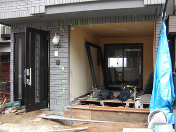 売主が車庫を部屋に作り変えていたのですが、もともとのアルミサッシをそのまま残してあり、とても「安らげる部屋」ではなく、道路側の壁には『耐力壁』がなかったため、一度その部屋を壊し、基礎を作り、あらたに『耐力壁』を作りました。